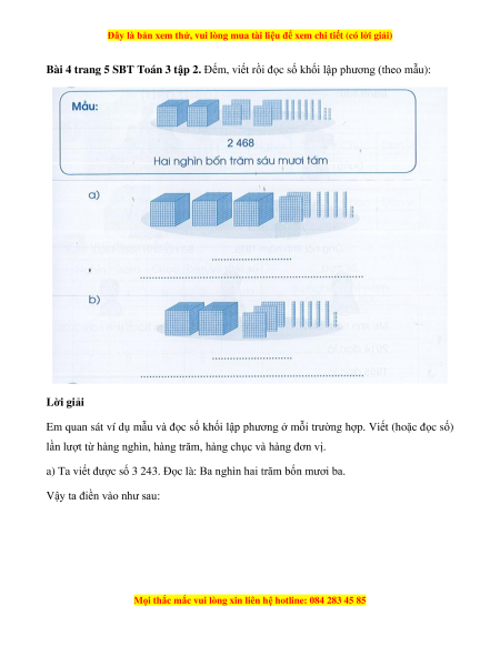Bài 4 trang 5 SBT Toán 3 tập 2. Đếm, viết rồi đọc số khối lập phương (theo mẫu): Lời giải