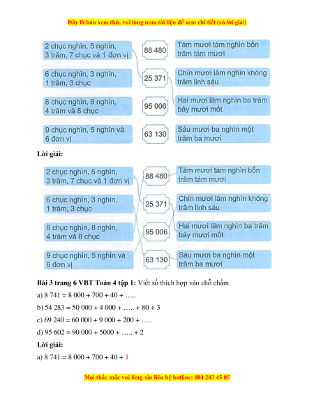d) 95 602 = 90 000 + 5000 + ….. + 2 Lời giải: