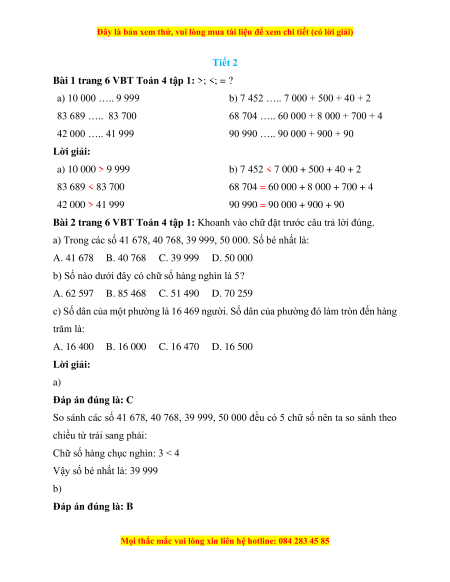 Bài 1 trang 6 VBT Toán 4 tập 1: >; <; = ?