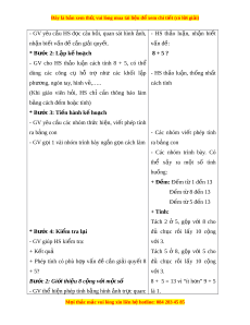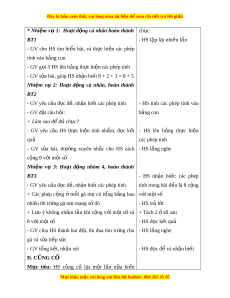 dùng các công cụ hỗ trợ như các kh i ố l p ậ - HS th o ả lu n, ậ th ng ố nh t ấ phư ng, ơ ngón tay, hình v ,….. ẽ cách tính (Khi giáo viên h i ỏ , HS chỉ c n ầ thông báo làm b ng ằ cách đ m ế hoặc tính) * Bước 3: Ti n hà ế nh k ho ế ch ạ - GV yêu c u ầ các nhóm th c ứ hi n, ệ vi t ế phép tính ra b ng ả con - Các nhóm vi t ế phép tính - GV g i