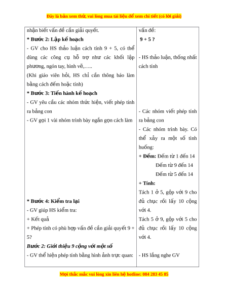 Đây là bản xem th , vu ử i lòng mua tài li u ệ đ xe ể m chi ti t (c ế ó l i ờ gi i ả ) nh n ậ bi t ế v n đ ấ c ề n gi ầ i ả quy t ế . vấn đ : ề * Bước 2: Lập k h ế oạch 9 + 5 ? - GV cho HS th o ả lu n