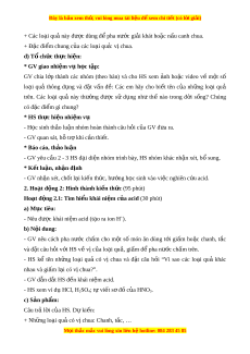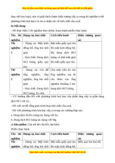 ấ có nguyên tử H và khi tan trong nư c ớ tách ra H+, đồng th i ờ hư ng ớ d n ẫ HS nh n ậ d ng ạ và phân bi t ệ đư c ợ m t ộ số acid thông d ng v ụ i ớ các h p ch ợ t ấ khác. Hoạt đ ng 2.2 ộ : Tìm hi u t ể ính ch t ấ hoá h c c ọ a aci u d (45 phút) a) M c t ụ iêu: - Ti n ế hành đư c ợ thí nghi m ệ c a