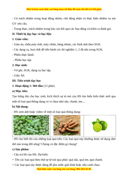 một số loại quả thông dụng có vị chua như sấu, chanh, me.... b) Nội dung: