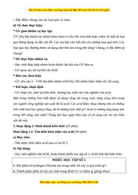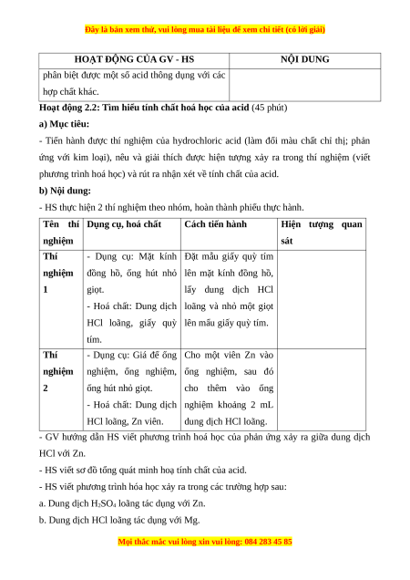 Giáo án Acid Hóa học 8 Chân trời sáng tạo