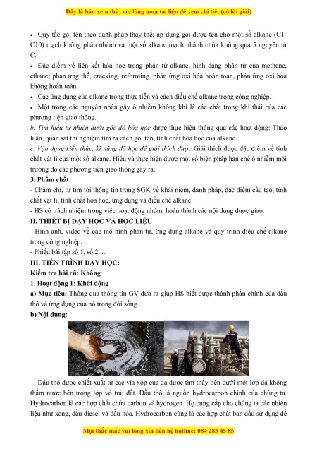 chất vật lí của một số alkane. Hiểu và thực hiện được một số biện pháp hạn chế ô nhiễm môi