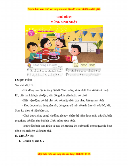 CHỦ ĐỀ 09 MỪNG SINH NHẬT I.MỤC TIÊU Sau chủ đề, HS: