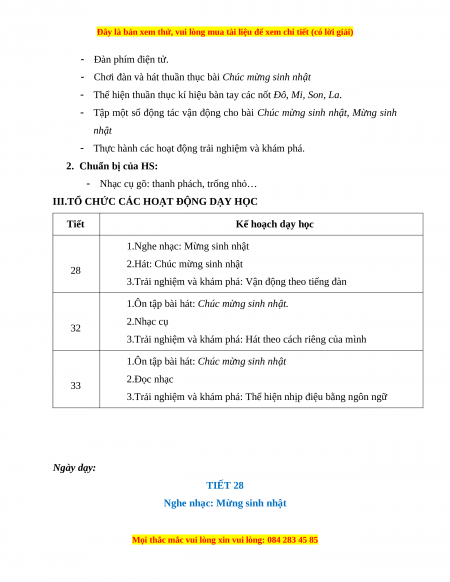 1.Ôn tập bài hát: Chúc mừng sinh nhật. 2.Nhạc cụ 32