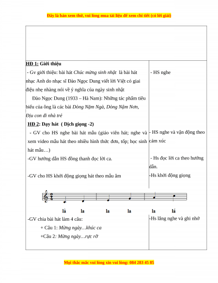 HĐ 2: Dạy hát ( Dịch giọng -2)