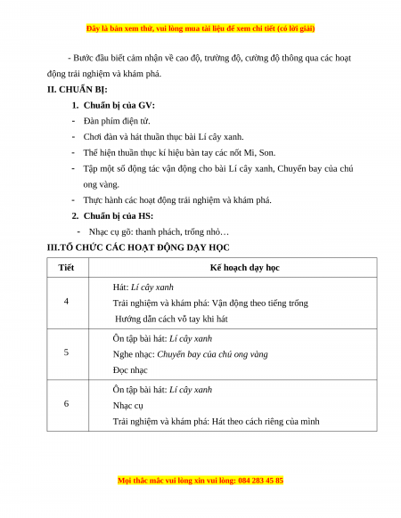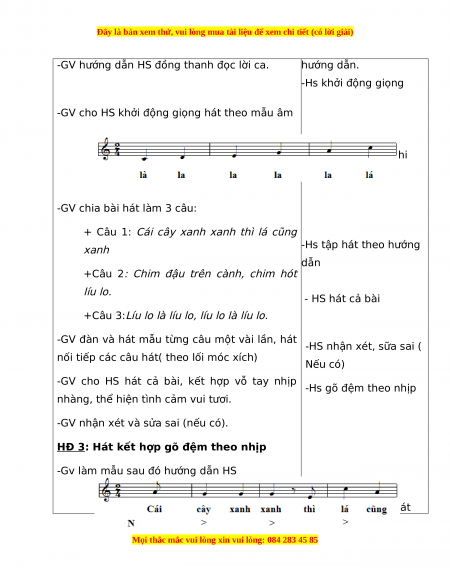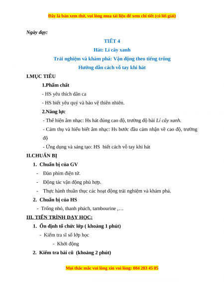 Kế hoạch dạy học Hát: Lí cây xanh 4