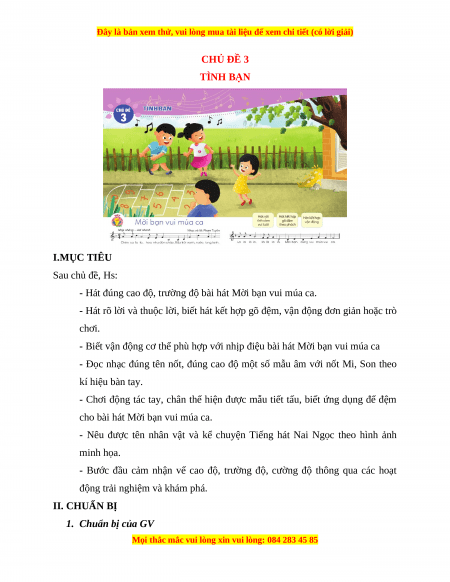CHỦ ĐỀ 3 TÌNH BẠN I.MỤC TIÊU Sau chủ đề, Hs:
