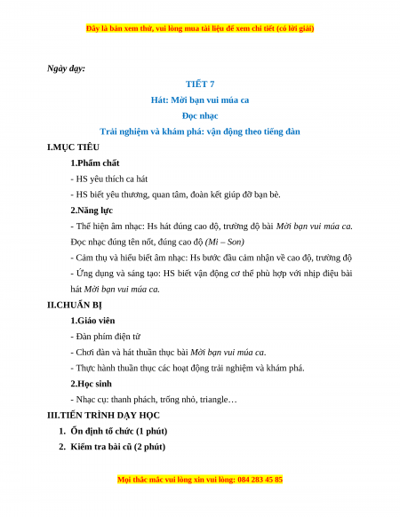 1. Hát: Mời bạn vui múa ca 7 2. Đọc nhạc
