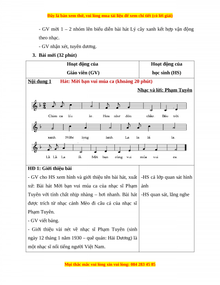 Nội dung 1 Hát: Mời bạn vui múa ca (khoảng 20 phút)