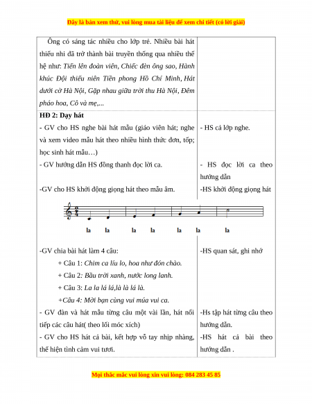- Hát rõ lời và thuộc lời, biết hát kết hợp gõ đệm, vận động đơn giản hoặc trò
