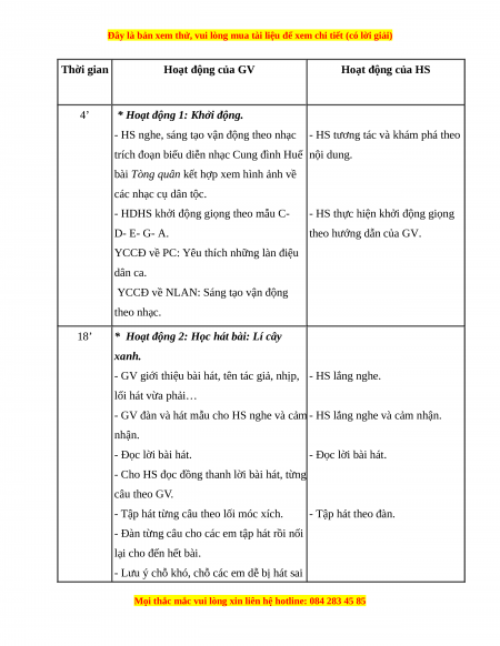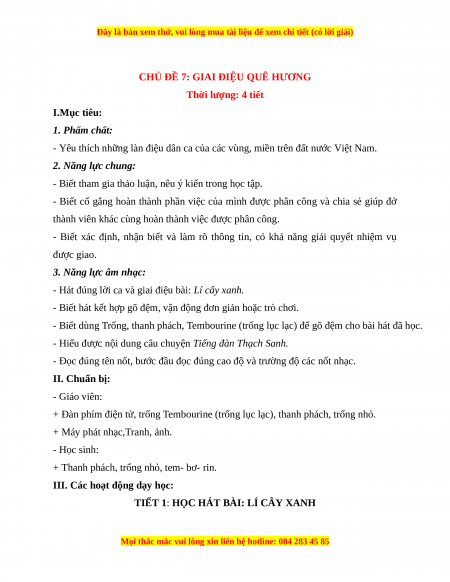 TIẾT 1: HỌC HÁT BÀI: LÍ CÂY XANH