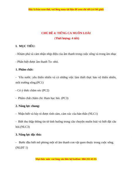 CHỦ ĐỀ 4: TIẾNG CA MUÔN LOÀI