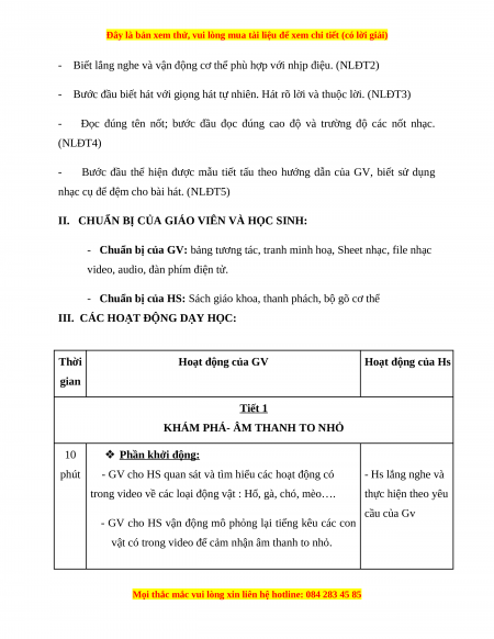 Giáo án Âm nhạc 1 Chân trời sáng tạo Tiếng ca muôn loài