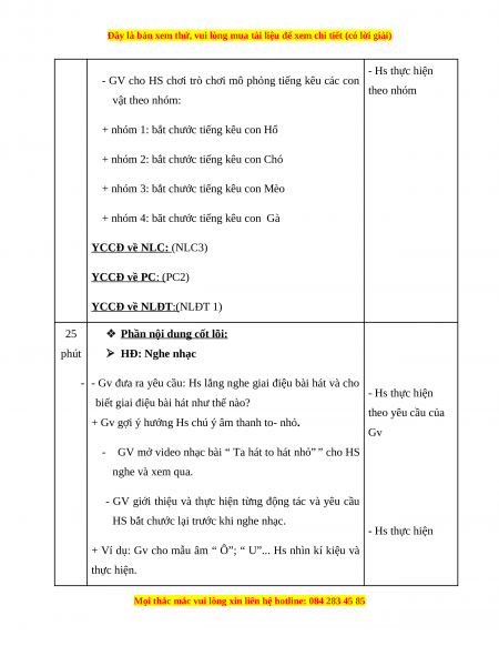 - Bước đầu biết mô phỏng một số âm thanh con vật quen thuộc trong cuộc sống. (NLĐT 1)