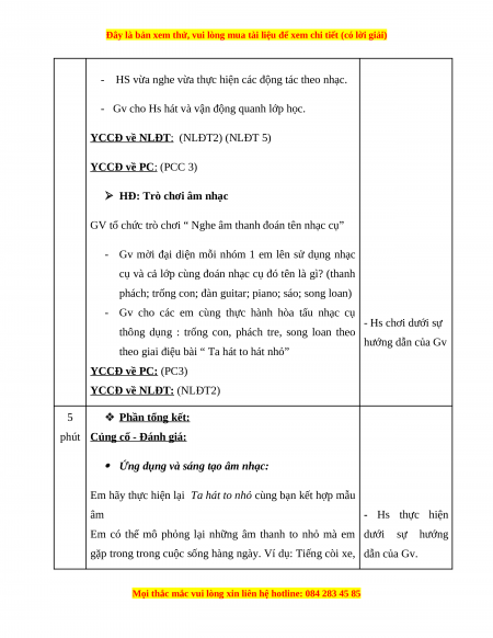 - Biết lắng nghe và vận động cơ thể phù hợp với nhịp điệu. (NLĐT2)