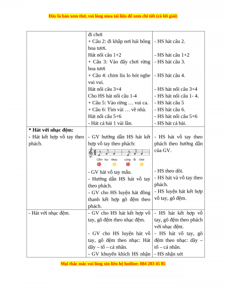 - Bước đầu hát kết hợp vỗ tay theo phách ở hình thức đồng ca, tốp ca kết hợp với nhạc đệm.