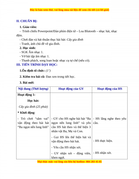 Giáo án Âm nhạc 1 Kết nối tri thức Gia đình