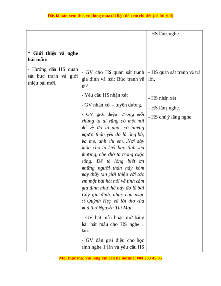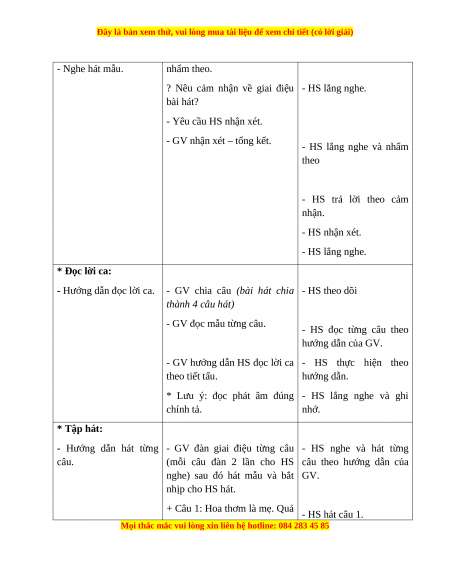 - HS lắng nghe. * Giới thiệu và nghe hát mẫu: