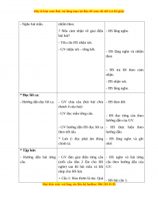 - GV nhận xét – tổng kết. - HS lắng nghe và nhẩm theo - HS trả lời theo cảm nhận. - HS nhận xét. - HS lắng nghe. * Đọc lời ca: