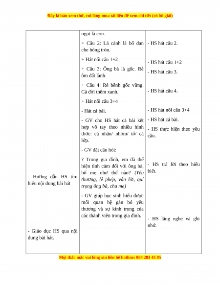 - Học sinh bước đầu nhớ được tên, hát rõ lời ca và đúng theo giai điệu bài hát Cây gia đình.