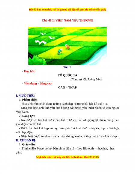 Chủ đề 2: VIỆT NAM YÊU THƯƠNG Tiết 1: - Học hát: TỔ QUỐC TA