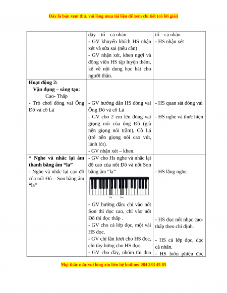 - Nhận biết được âm thanh cao - thấp khi nghe nhạc thông qua trò chơi âm nhạc. II. CHUẨN BỊ: 1. Giáo viên: