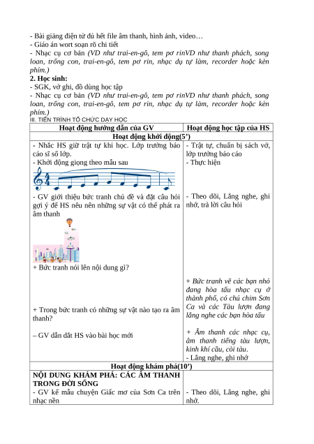 NỘI DUNG KHÁM PHÁ: CÁC ÂM THANH TRONG ĐỜI SỐNG