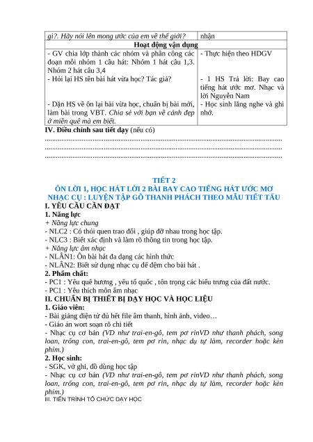 - NLC1 : Có ý thức về quyền và mong muốn của bản thân khi học bài hát Bay cao tiếng hát ước mơ.