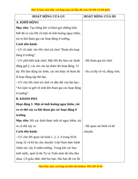 “An toàn và giữ vệ sinh khi tham gia các hoạt động ở trường”. B. KHÁM PHÁ
