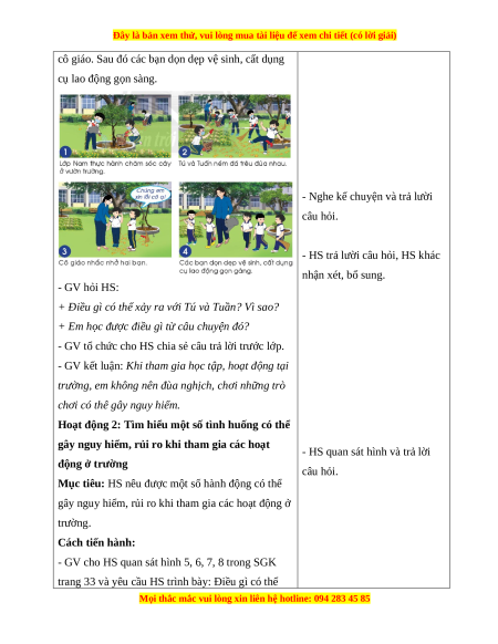 gây nguy hiểm, rủi ro khi tham gia các hoạt động ở trường. Cách tiến hành: