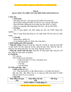 ể tra bài cũ: (5p) - GV: Th u kí ấ nh phân kì có đ c đi ặ m ể gì khác so v i ớ th u kí ấ nh h i ộ t ? ụ Nêu tính ch t ấ , đ c ặ đi m ể c a ủ các tia sáng qua th u ấ kính phân kì? Bi u ể di n t ễ rên hình v các t ẽ ia sáng đó. 3. Bài m i ớ H at ọ đ ng c ộ a gi ủ áo H at ọ đ ng c ộ a h ủ c ọ N i ộ dung viên sinh HOẠT Đ N Ộ G 1: Kh i ở đ ng ( ộ 5’) M i ọ thắc m c