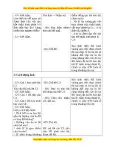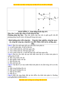 ọ 1 HS Lên trình xét, s a s ử ai. chính vì v y ậ A’B’ luôn ở bày cách vẽ. trong kho ng ả tiêu c . ự - GV: K t ế lu n. ậ G i ợ ý cách l p l ậ u n: ậ + D ch ị AB ra xa hay l i ạ gần thì hư ng ớ c a ủ tia BI có thay đổi không? + Hư ng ớ c a ủ tia ló IK - HS: Tr l ả i ờ . nh t ư hế nào? + nh ả B' là giao đi m ể HS: trả l i ờ câu C3, yêu c a ủ tia nào? cầu HS ph i ả tóm t t ắ + B' n m ằ trong kho ng ả đư c ợ đ bài ề . M i ọ thắc m c