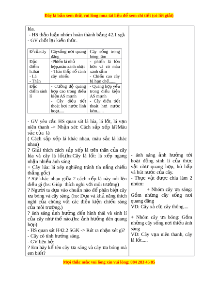 Đây là bản xem th , vu ử i lòng mua tài li u ệ đ xe ể m chi ti t (c ế ó l i ờ gi i ả ) lúa. - HS th o l ả u n