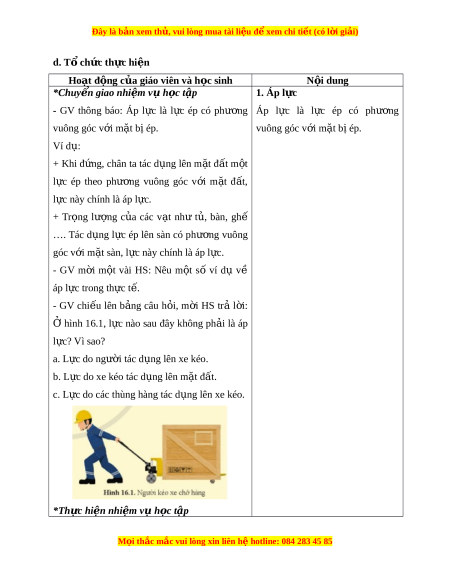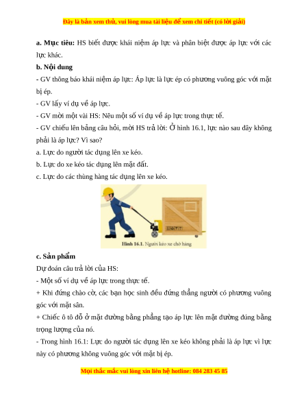 ệ đ xe ể m chi ti t ế (có l i ờ gi i ả ) a. M c ụ tiêu: HS bi t ế đư c ợ khái ni m ệ áp l c ự và phân bi t ệ đư c ợ áp l c ự v i ớ các l c ự khác. b. N i ộ dung