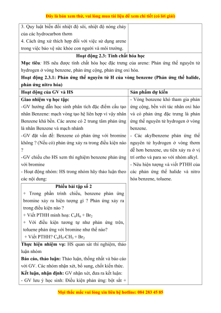 luận, quan sát video thí nghiệm của arene để tìm hiểu về tính chất hóa học của arene.