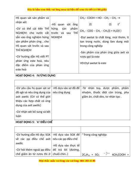 -Tính nồng độ axit hoặc khối lượng dd axit axetic tham gia hoặc tạo thành trong phản ứng. 3)Thái độ: