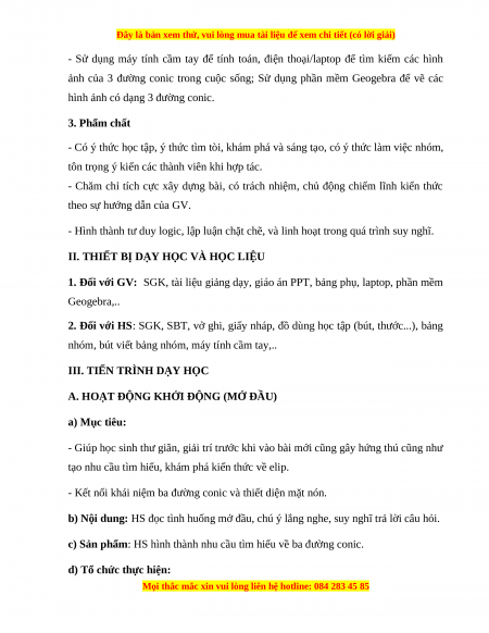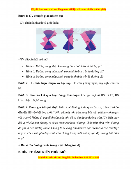- Nhận biết được 3 đường conic bằng hình học.
