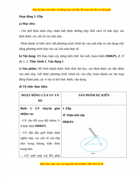 Hoạt động 1: Elip a) Mục tiêu: