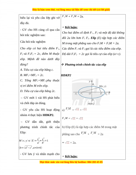 của một elip, viết được phương trình chính tắc của elip, hoàn thành các bài hoạt