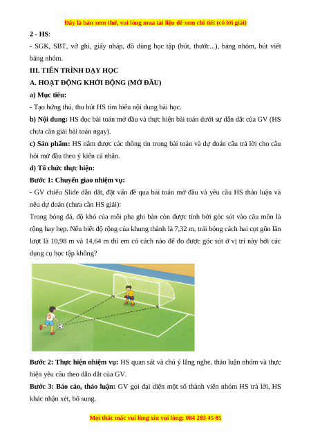 - Vận dụng định lí để xử lí các bài toán có liên quan. b) Nội dung: