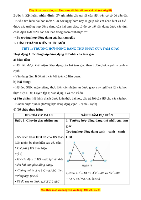 - HS hiểu được khái niệm đồng dạng của hai tam giác theo trường hợp cạnh - cạnh – cạnh.
