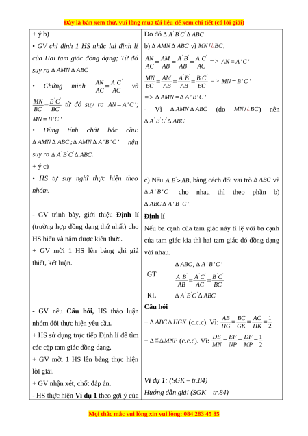 thích được các Định lí, tính chất của 3 trường hợp đồng dạng của tam giác.