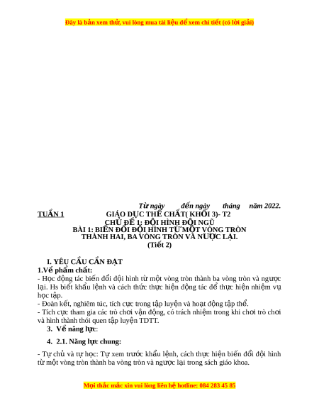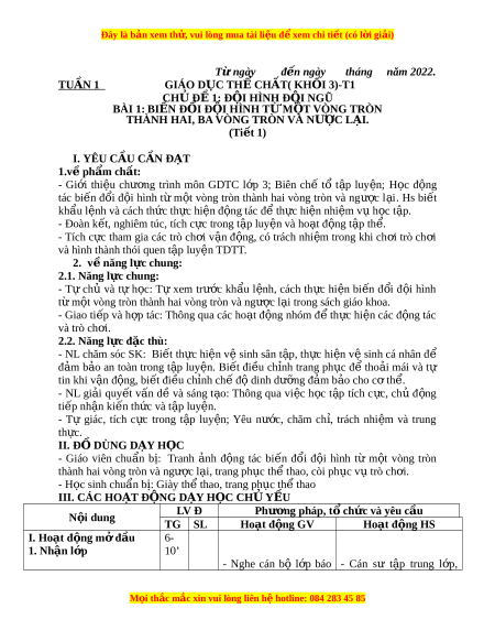 tháng năm 2022. TUẦN 1 GIÁO D C Ụ THỂ CHẤT( KH I Ố 3)-T1 CH Đ Ủ Ề 1: Đ I Ộ HÌNH Đ I Ộ NGŨ BÀI 1: BIẾN Đ I Ổ Đ I Ộ HÌNH T M Ừ T Ộ VÒNG TRÒN