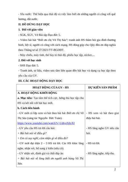 + Bài hát nói về lòng biết ơn người anh hùng Võ Thị Sáu. 2
