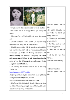 - GV mở rộng cho HS xem video về tiểu sử anh hùng Võ Thị Sáu: - HS làm việc nhóm. https://youtu.be/e6PKYkA_81k - HS lắng nghe GV nêu câu