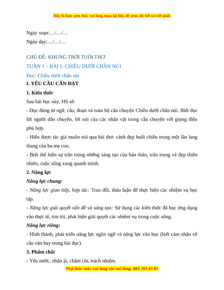 TUẦN 1 – BÀI 1: CHIỀU DƯỚI CHÂN NÚI
