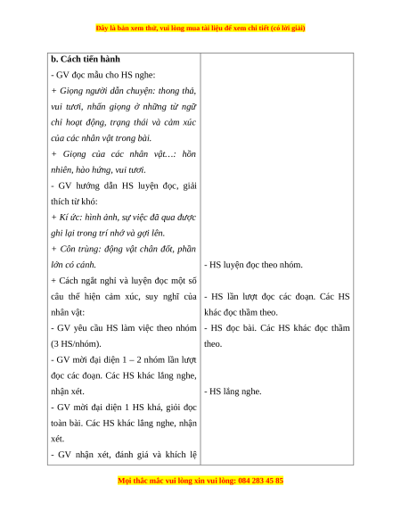 b. Cách tiến hành - GV đọc mẫu cho HS nghe: